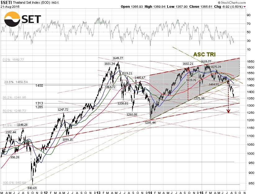 The sell-off got started on Tuesday following the tragic bomb blast on Monday night in central Bangkok that killed 22 innocent people and injured another hundred. The SET plunged 3.3% to an intraday low of 1,362.31 on Tuesday before the index bounced back to close at 1,372.61, down 2.56% for the day. Since then, the SET index has traded along with the global market.