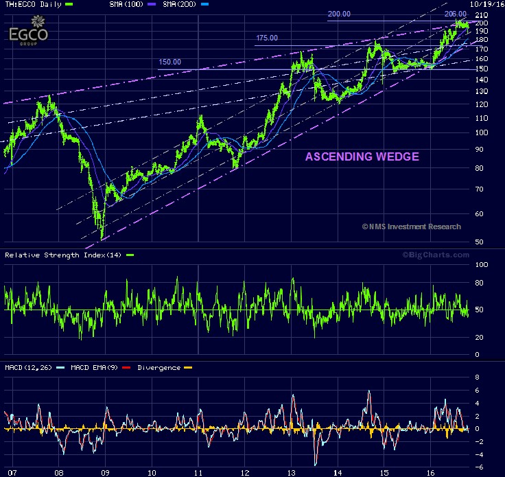From our technical viewpoint, shares of EGCO have been bumping into the 200 baht level since July. If the stock is unable to break out, it could pull back to the 175-180 baht levels, the long-term trendline supports. According to the Financial Times, the consensus amongst 14 polled investment analysts covering Electricity Generating gave the company an Outperform rating, with the median 12-month price target of 220 baht a share, as of October 14, 2016.