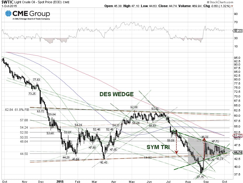 The spot WTI crude oil price, traded on the Chicago Mercantile Exchange, surged to an intraday high of U.S. $47.10 per barrel on Thursday before tumbling 5.01% to settle at U.S. $44.74 per barrel, after Russia resumed its second day of airstrikes in Syria and Iran is preparing for a ground offensive. Traders were concerned about the escalation of the conflict, as the U.S. government claimed that Russian airstrikes targeted CIA-backed rebels.