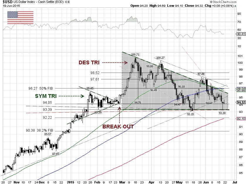 The U.S. dollar index (DXY), a weighted geometric index of the value of the U.S. dollar relative to a basket of six major currencies, began its June Swoon after European Central Bank (ECB) President Mario Draghi said on June 3 that the Eurosystem staff macroeconomic projections foresee annual Harmonised Indices of Consumer Prices (HICP) inflation at 0.3% in 2015, up from –0.1% forecasted in March. HICP is the consumer price inflation measured in the eurozone. In short, Mr. Draghi implied that the bond-buying by the ECB is working.